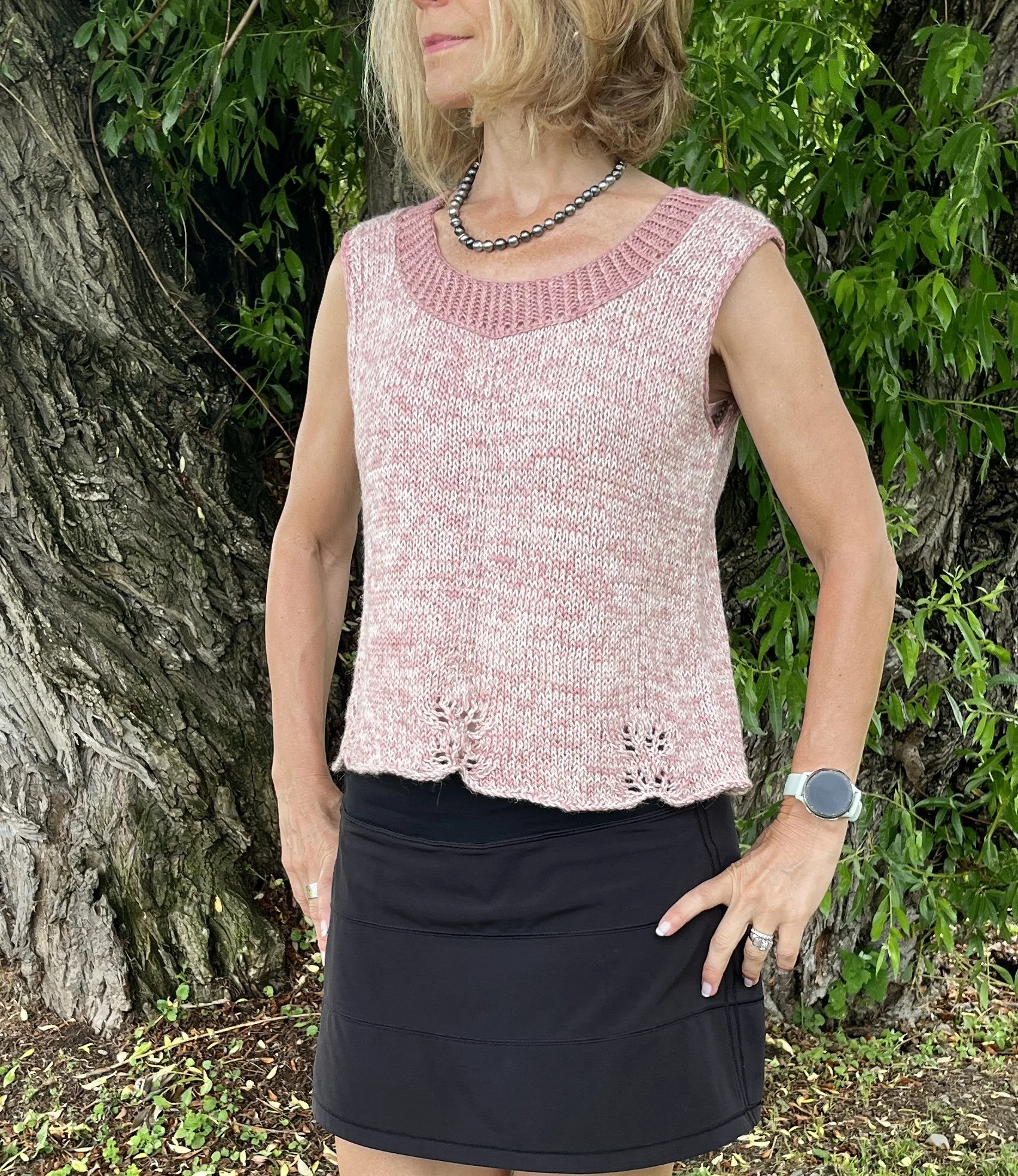 2 fils tricoter ensemble pour le corps et 1 fil pour l’encolure.